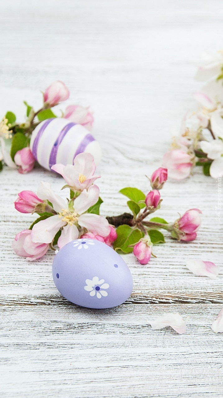 Edytor tapety: Dwie pisanki obok kwiatków