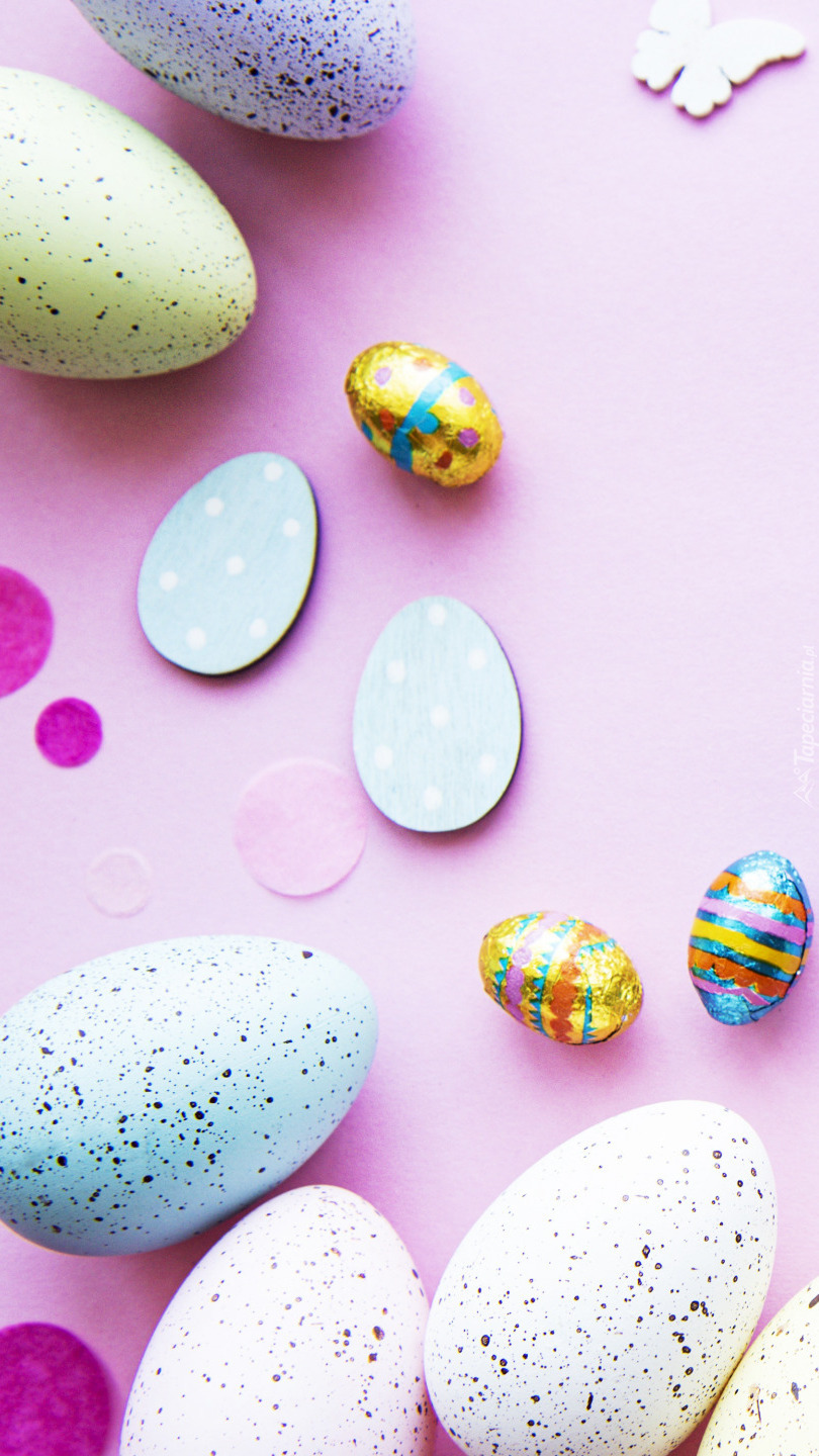 Edytor tapety: Czekoladowe jajeczka obok pisanek