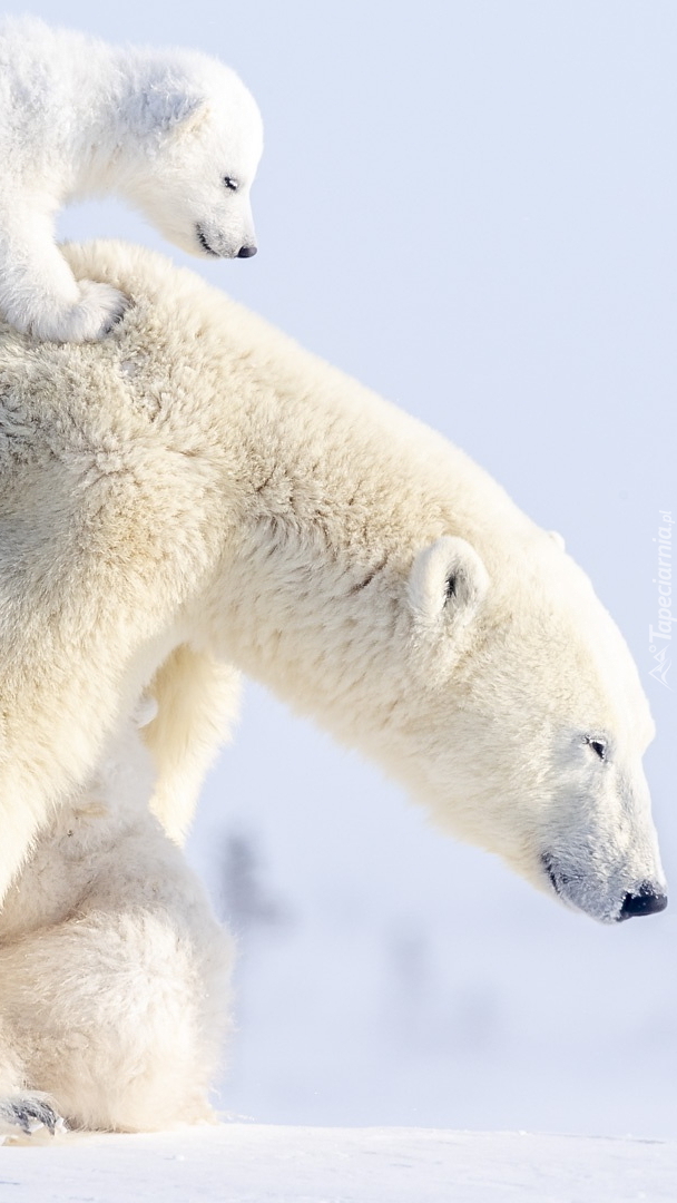 Edytor tapety: Niedźwiadek polarny na grzbiecie matki