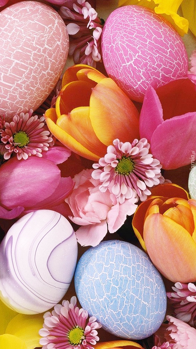 Edytor tapety: Pisanki wśród kwiatów