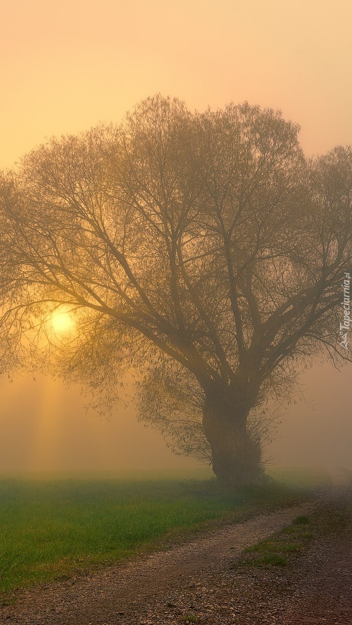 Edytor tapety: Przydrożne drzewo we mgle