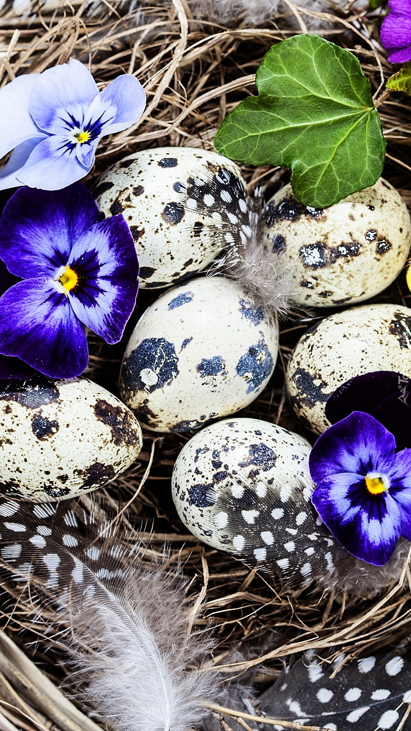Edytor tapety: Jajeczka i bratki w gniazdku