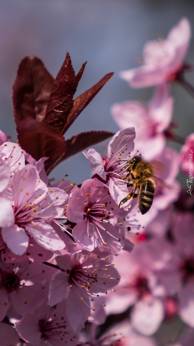 Edytor tapety: Pszczoła na kwiatkach wiśni
