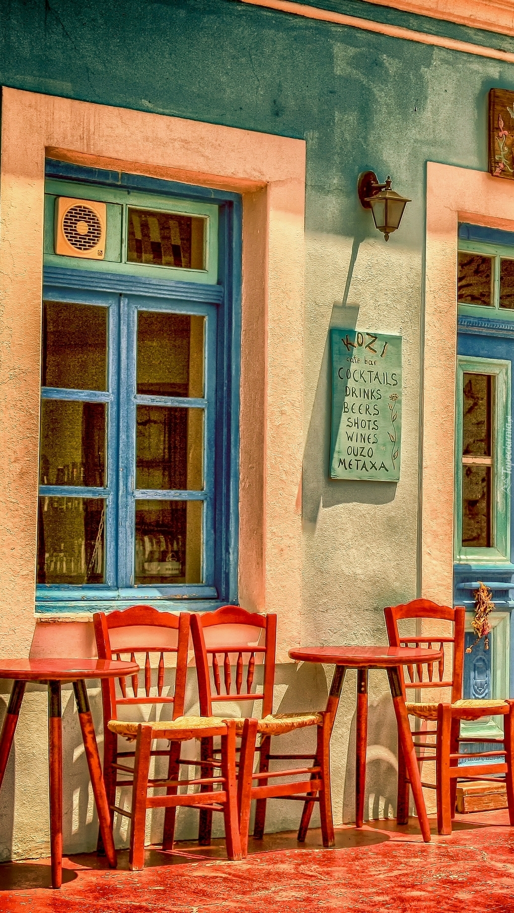 Edytor tapety: Krzesła i stoliki przed kawiarenką