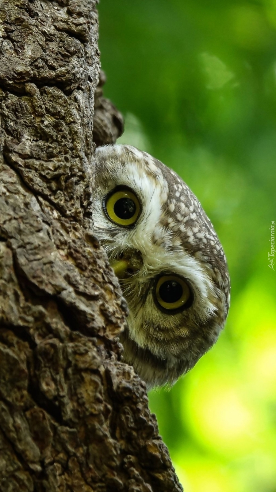 Edytor tapety: Głowa pójdźki za drzewem