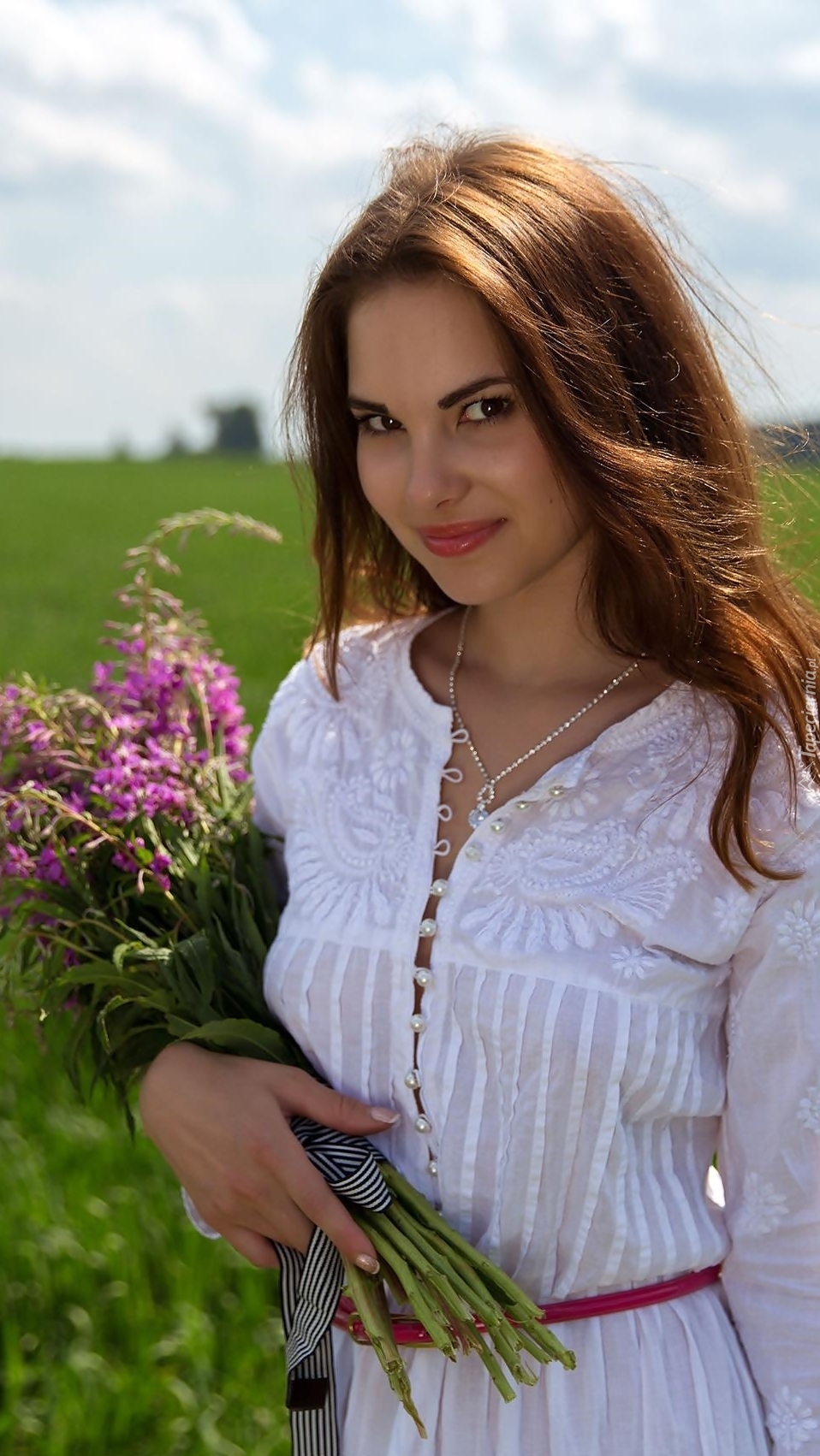 Edytor tapety: Kobieta z bukietem kwiatów