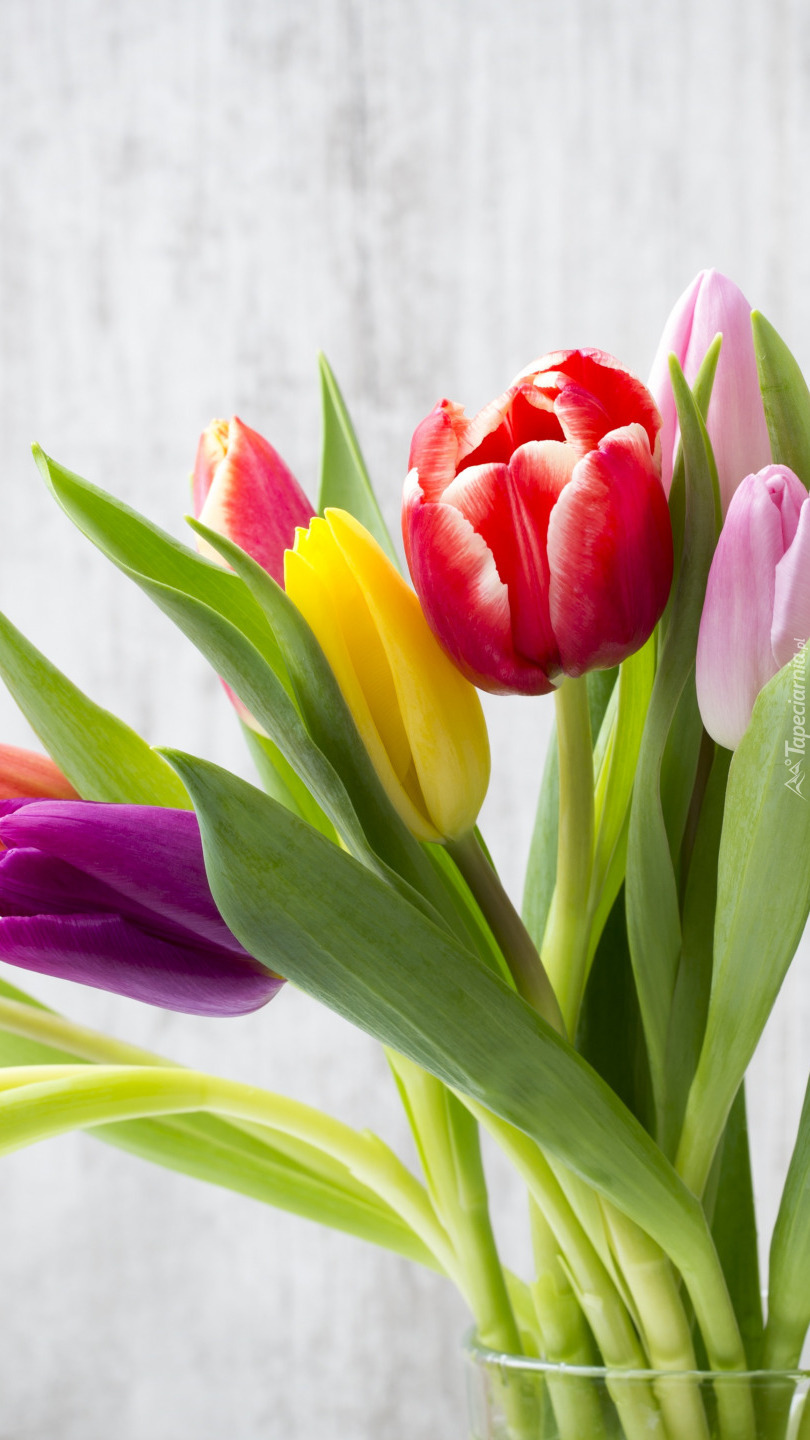 Edytor tapety: Bukiet kolorowych tulipanów