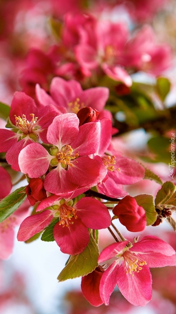 Edytor tapety: Czerwone kwiaty drzewa owocowego