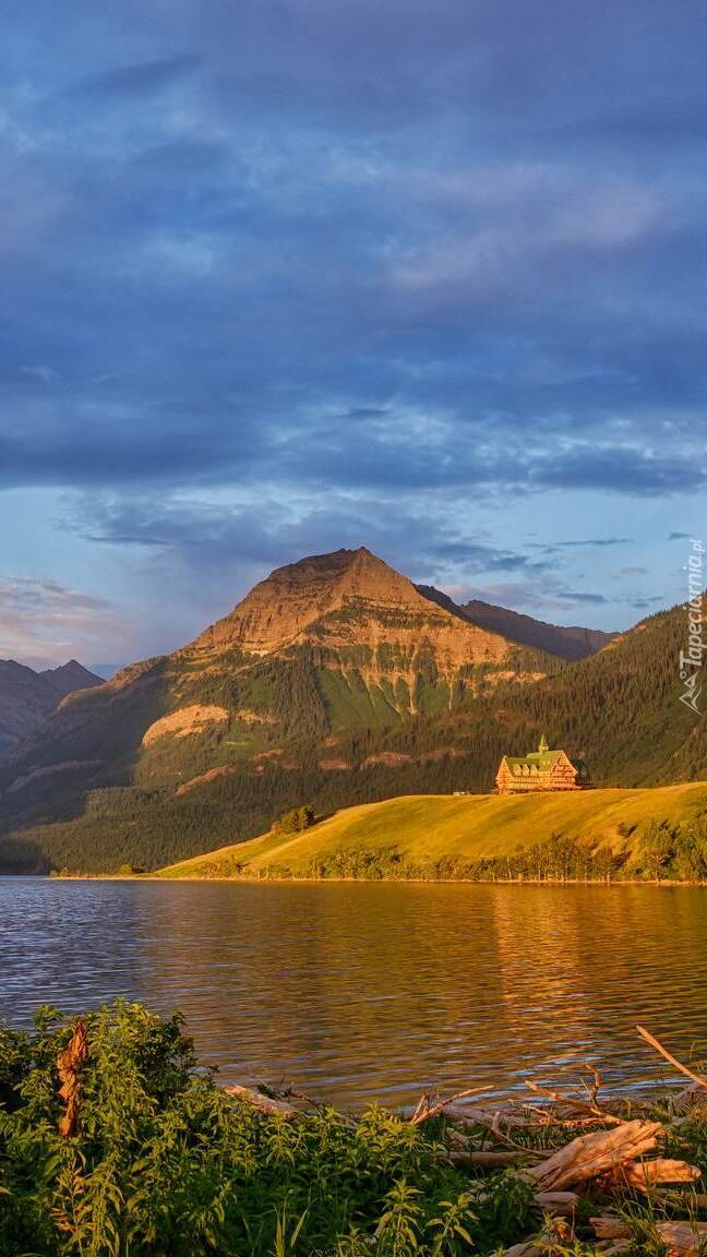 Edytor tapety: Hotel nad jeziorem Waterton w Kanadzie