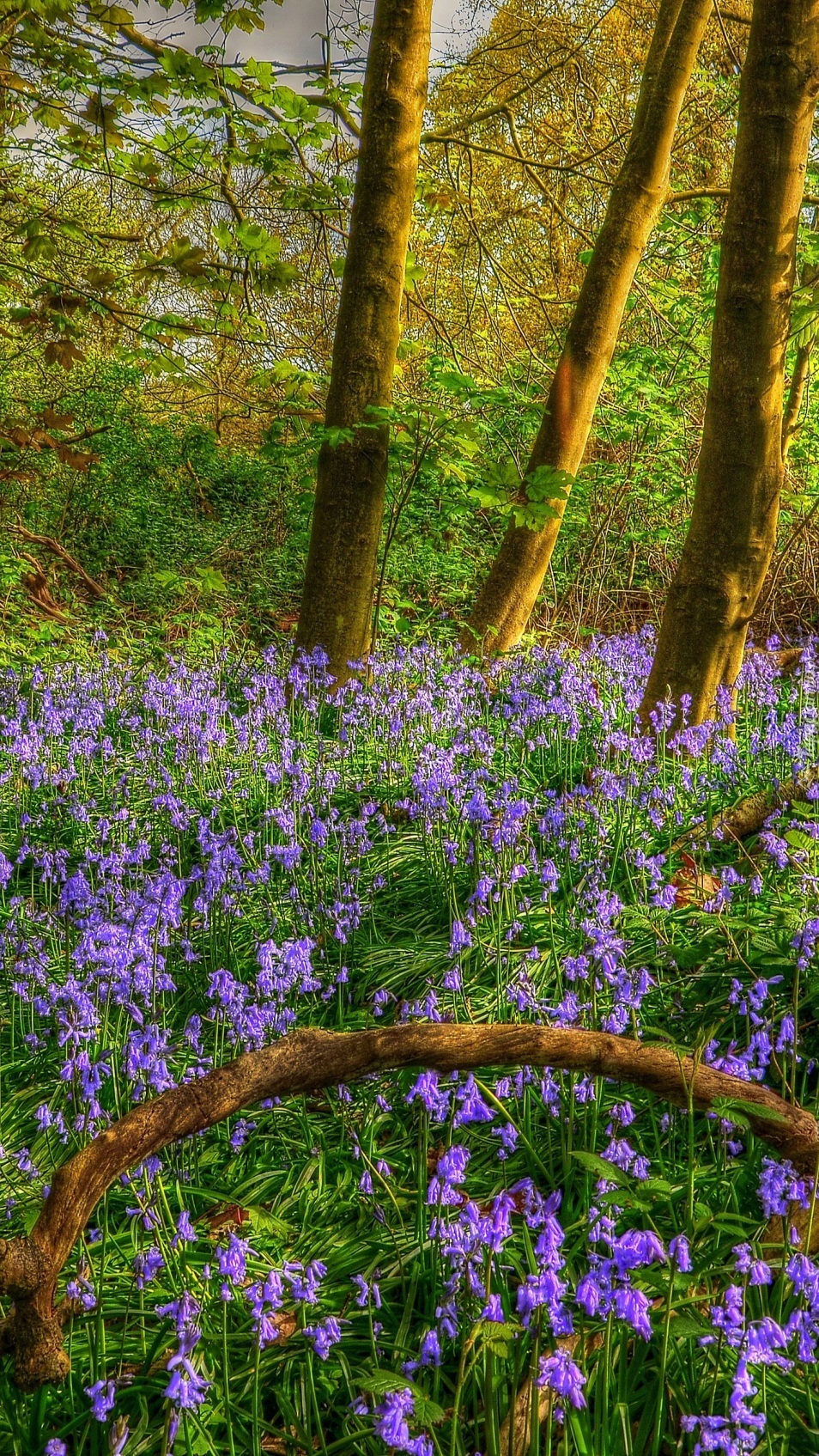 Edytor tapety: Fioletowe dzwonki pod drzewami
