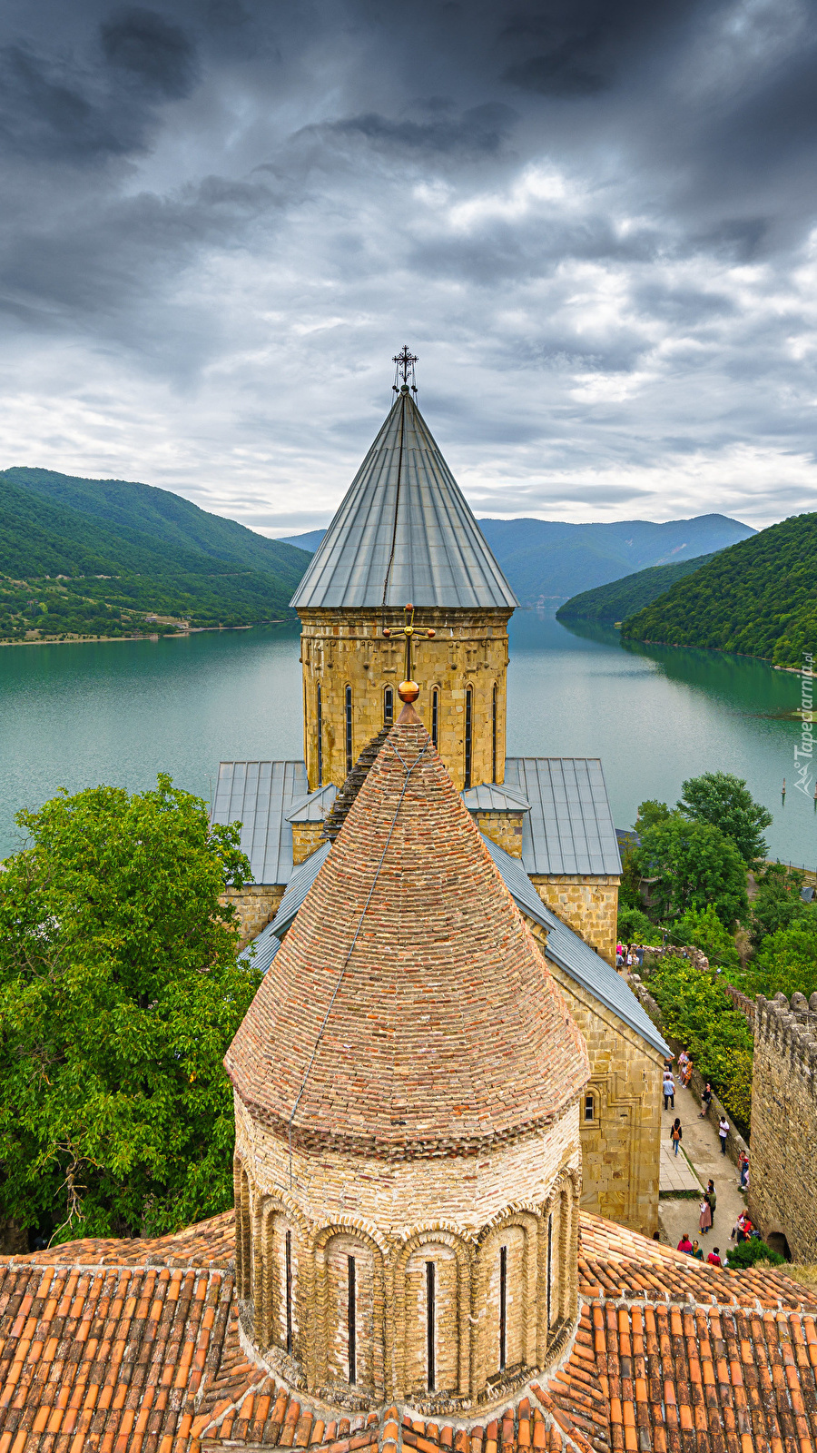 Edytor tapety: Wieże twierdzy Ananuri nad rzeką Aragwi