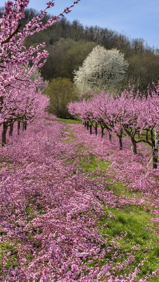 Edytor tapety: Kwitnący brzoskwiniowy sad