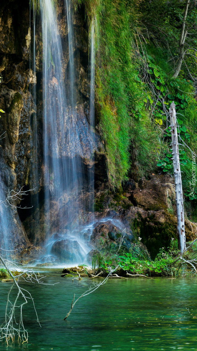 Edytor tapety: Wodospad wpadający do jeziora