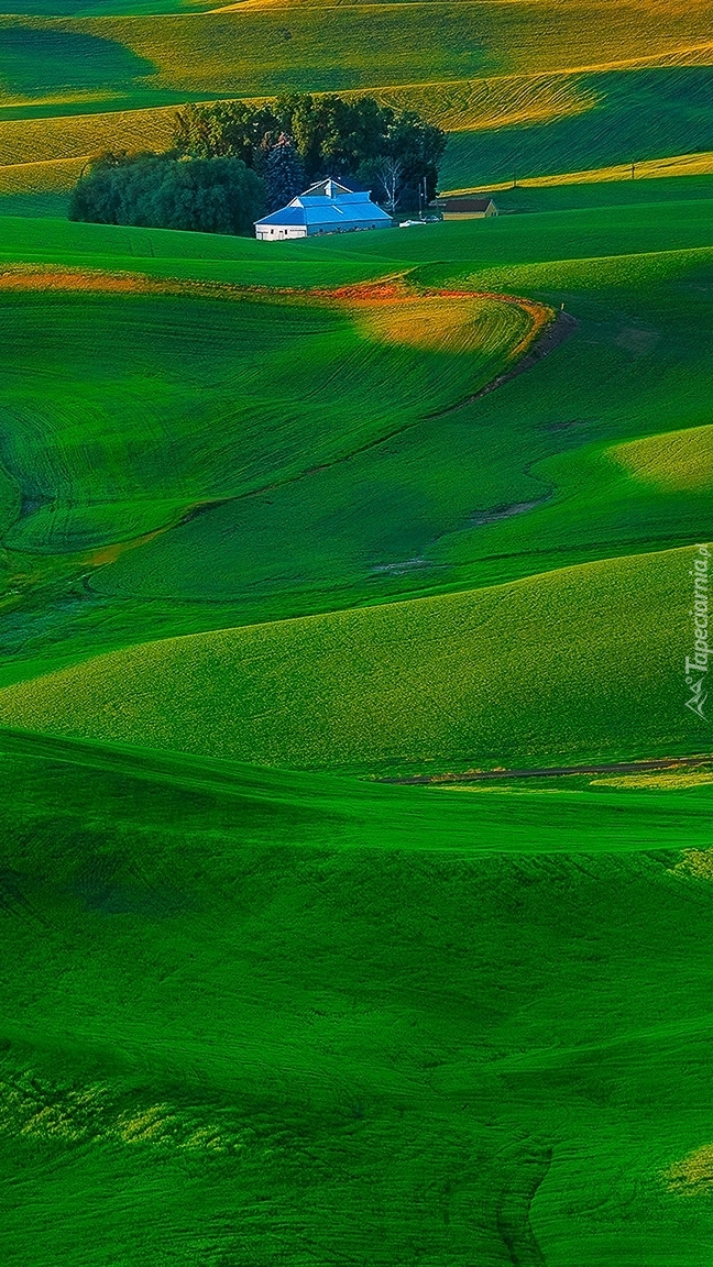 Edytor tapety: Dom na zielonych wzgórzach