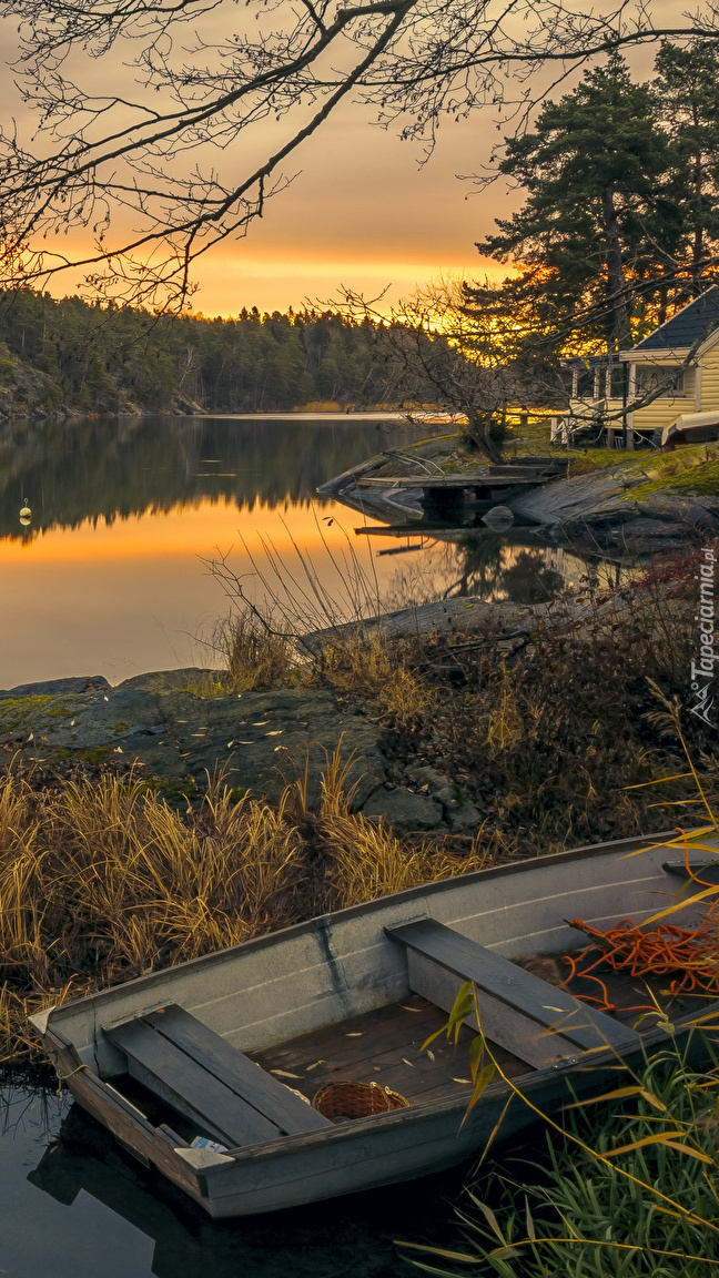 Edytor tapety: Łódka na brzegu jeziora