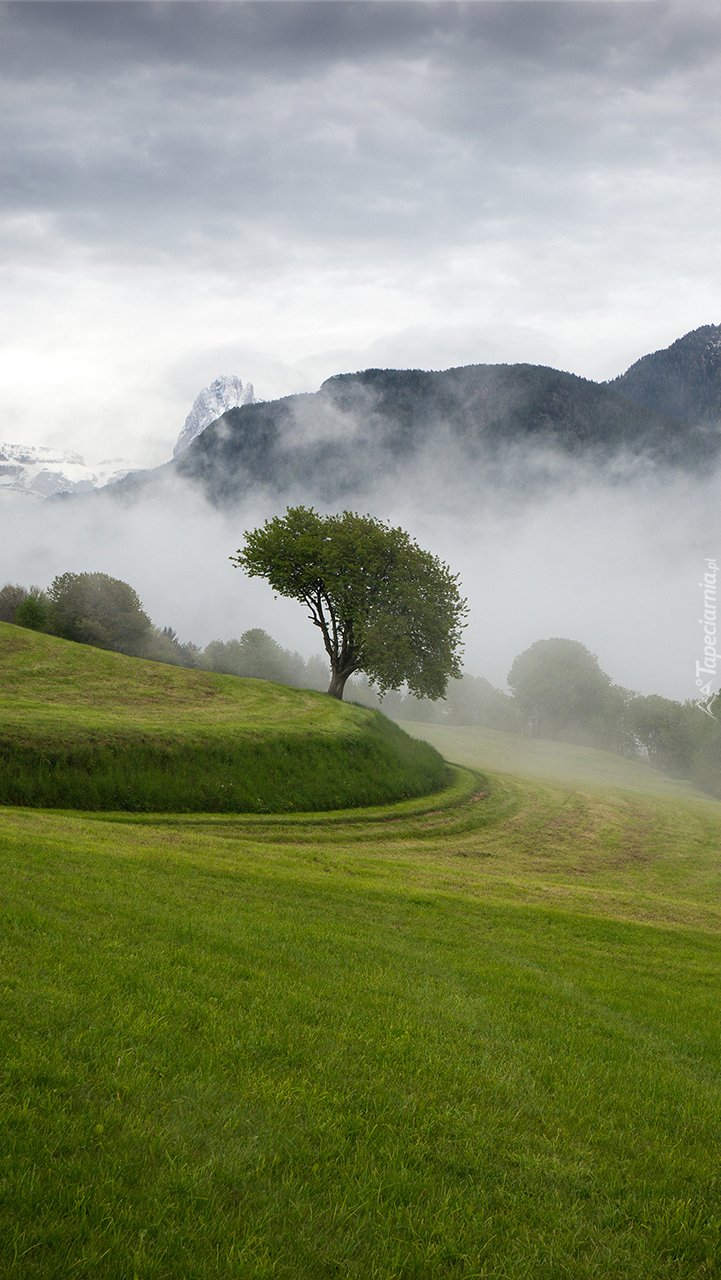 Edytor tapety: Drzewa na zamglonych wzgórzach