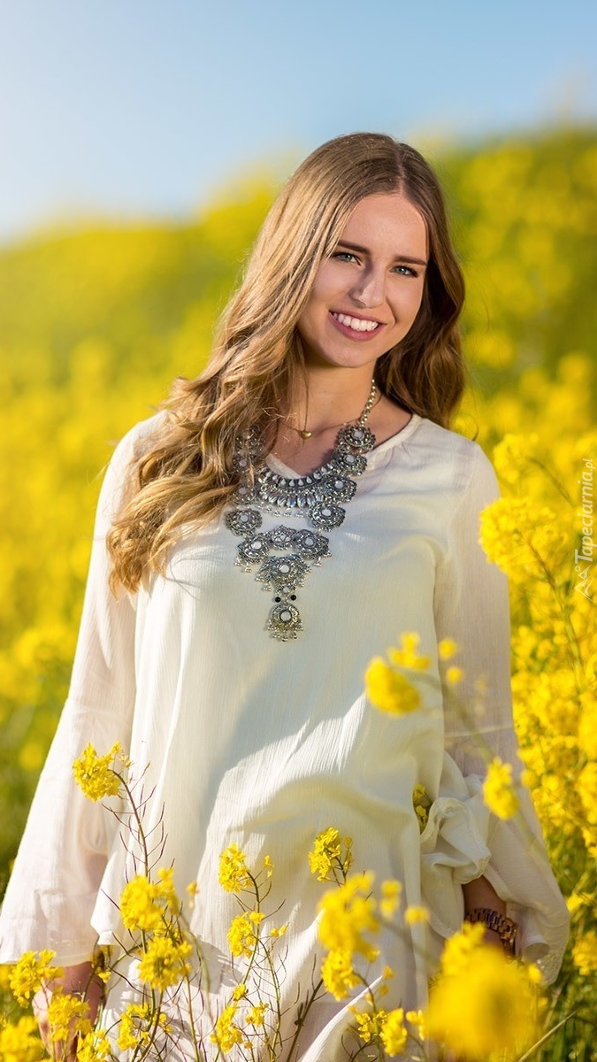 Edytor tapety: Dziewczyna w kwiatach rzepaku