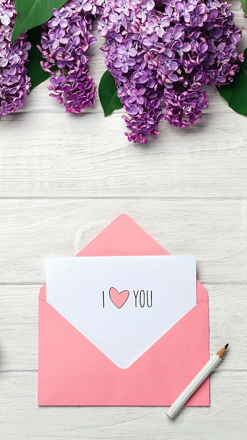 Edytor tapety: Kwiaty bzu obok koperty i kartki