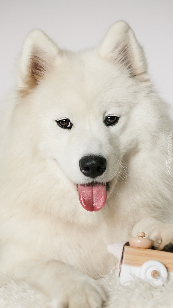 Edytor tapety: Samojed z zabawką