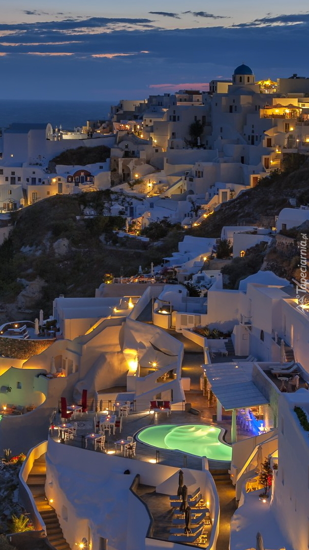 Edytor tapety: Oświetlone domy w Santorini