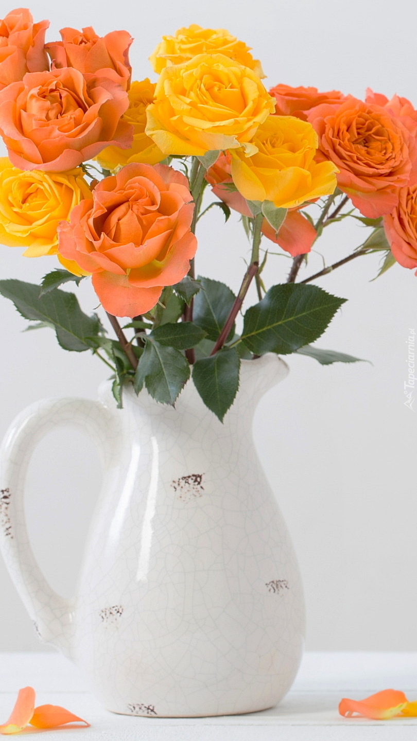 Edytor tapety: Róże w porcelanowym dzbanku