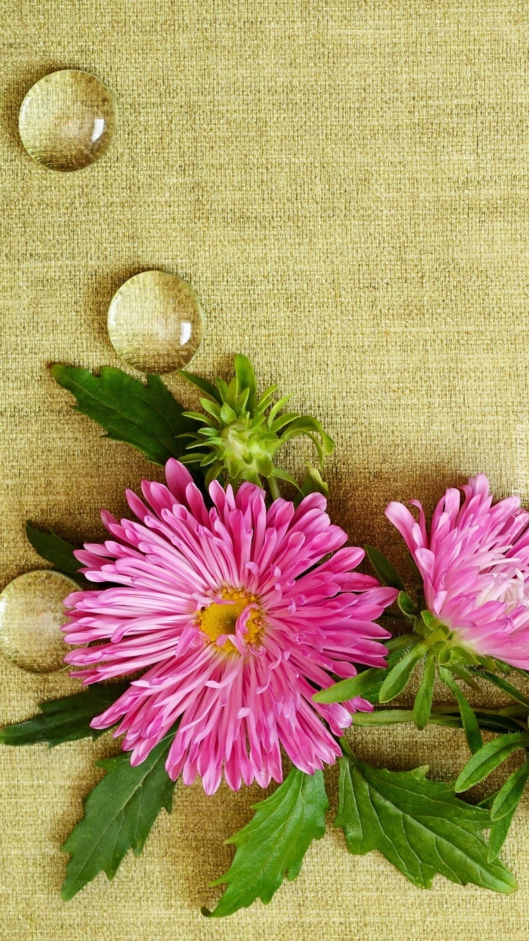 Edytor tapety: Astry i krople na tkaninie