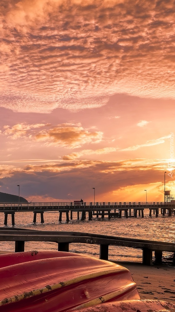 Edytor tapety: Łódki na plaży obok mola