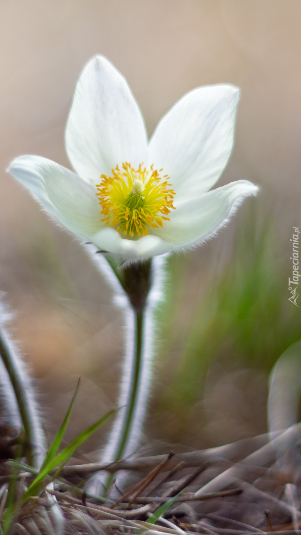 Edytor tapety: Biała sasanka w zbliżeniu