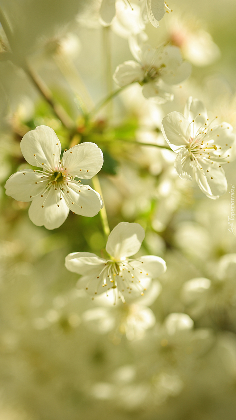 Edytor tapety: Białe kwiaty drzewa owocowego