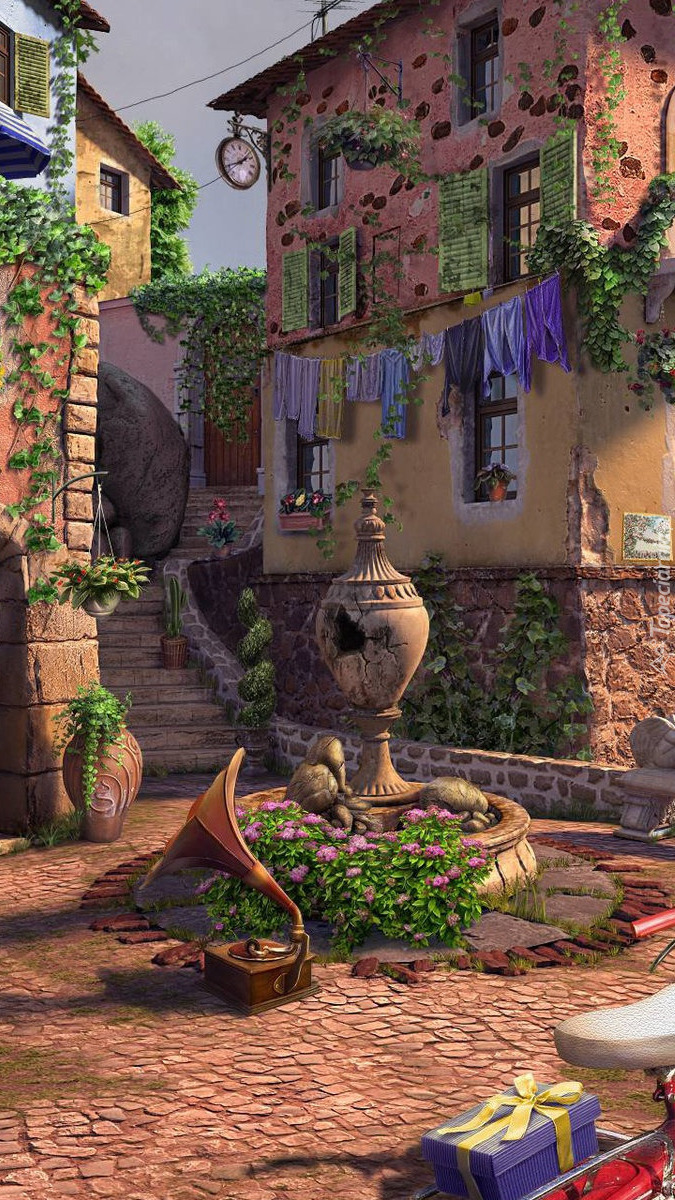 Edytor tapety: Fontanna na dziedzińcu domu w grafice