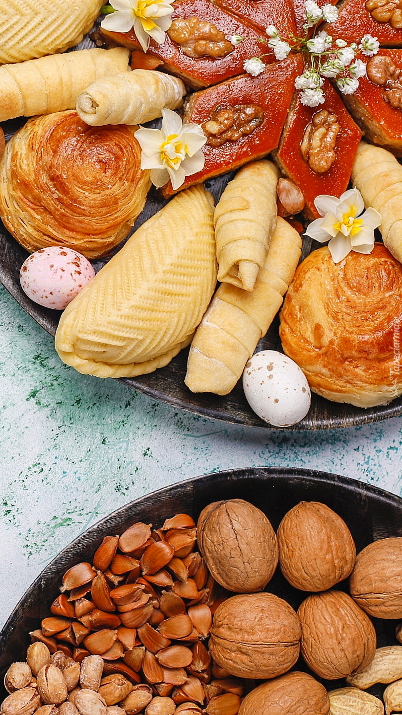 Edytor tapety: Ciasteczka i orzechy w miskach
