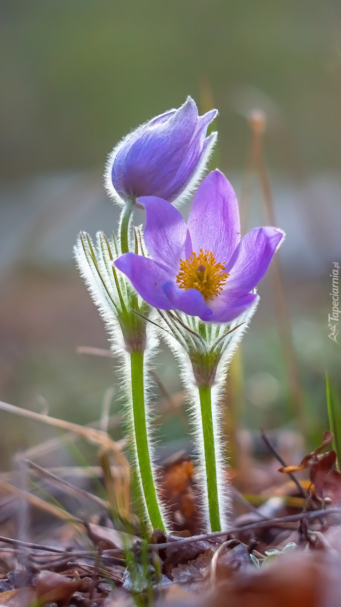 Edytor tapety: Fioletowe sasanki w zbliżeniu