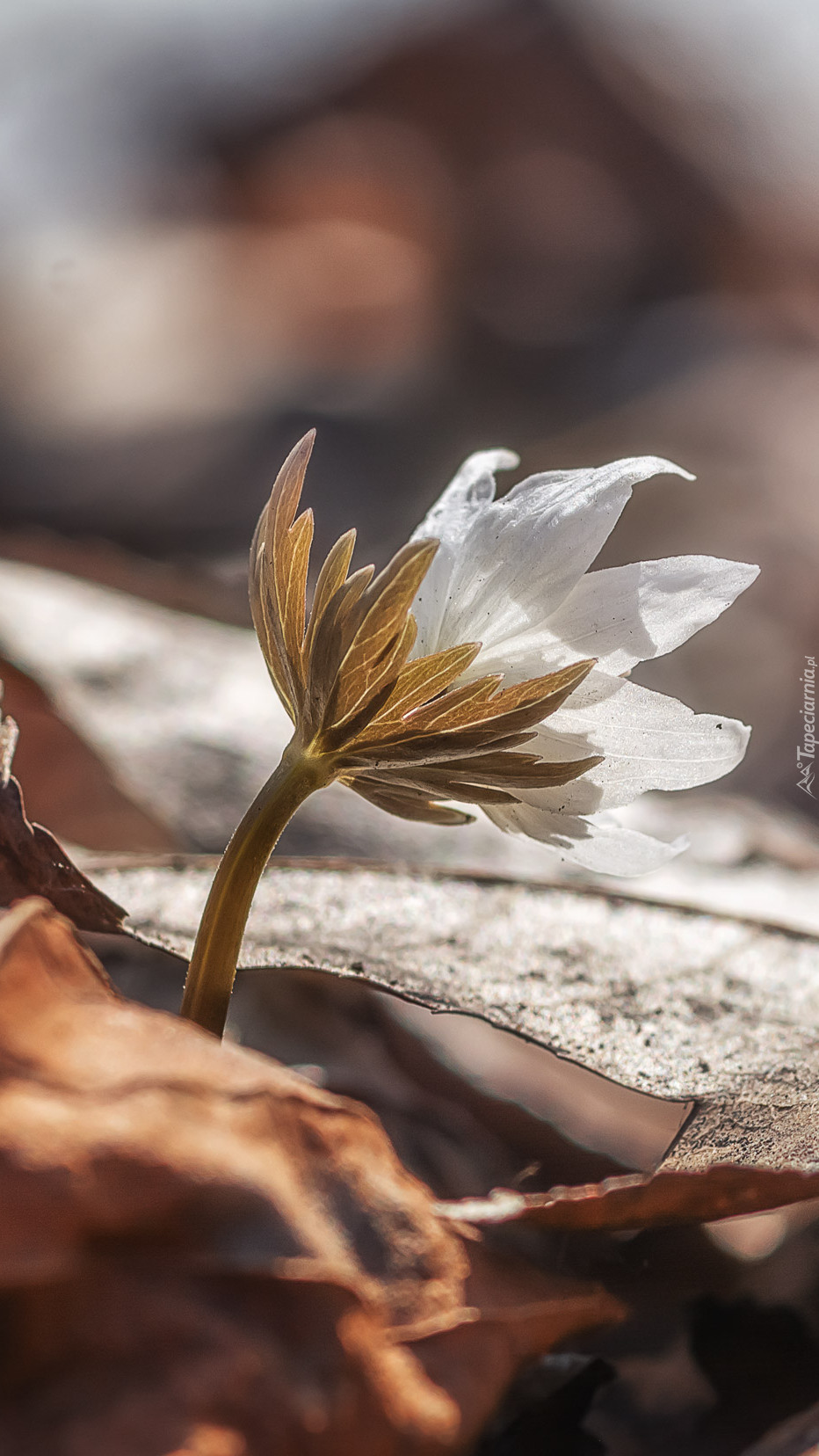 Edytor tapety: Zawilec w suchych liściach