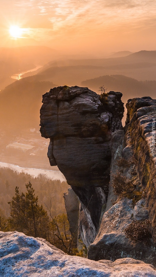 Edytor tapety: Skały na tle zamglonych gór