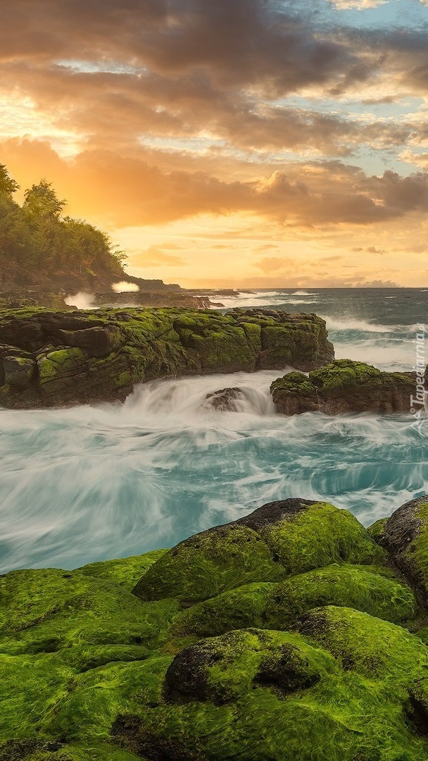 Edytor tapety: Omszałe skały na wybrzeżu