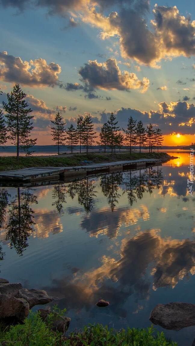 Edytor tapety: Pomost i drzewa nad jeziorem
