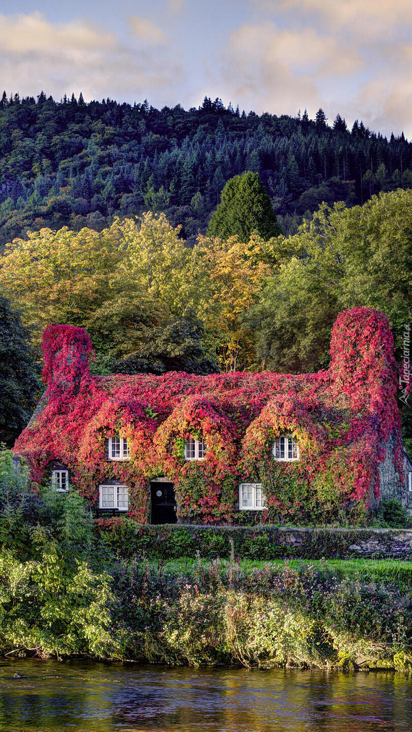 Edytor tapety: Dom okryty jesiennym winobluszczem