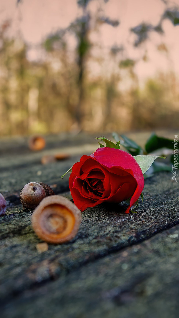 Edytor tapety: Żołędzie i czerwona róża