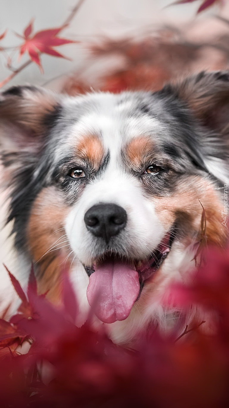 Edytor tapety: Owczarek australijski z wywieszonym językiem
