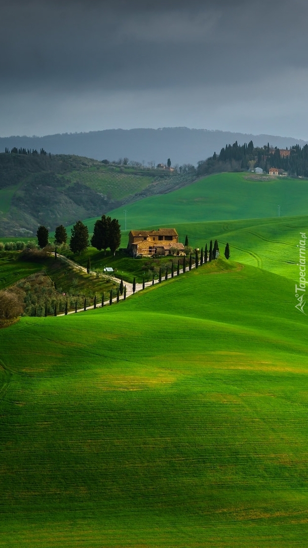 Edytor tapety: Domy na zielonych wzgórzach Toskanii