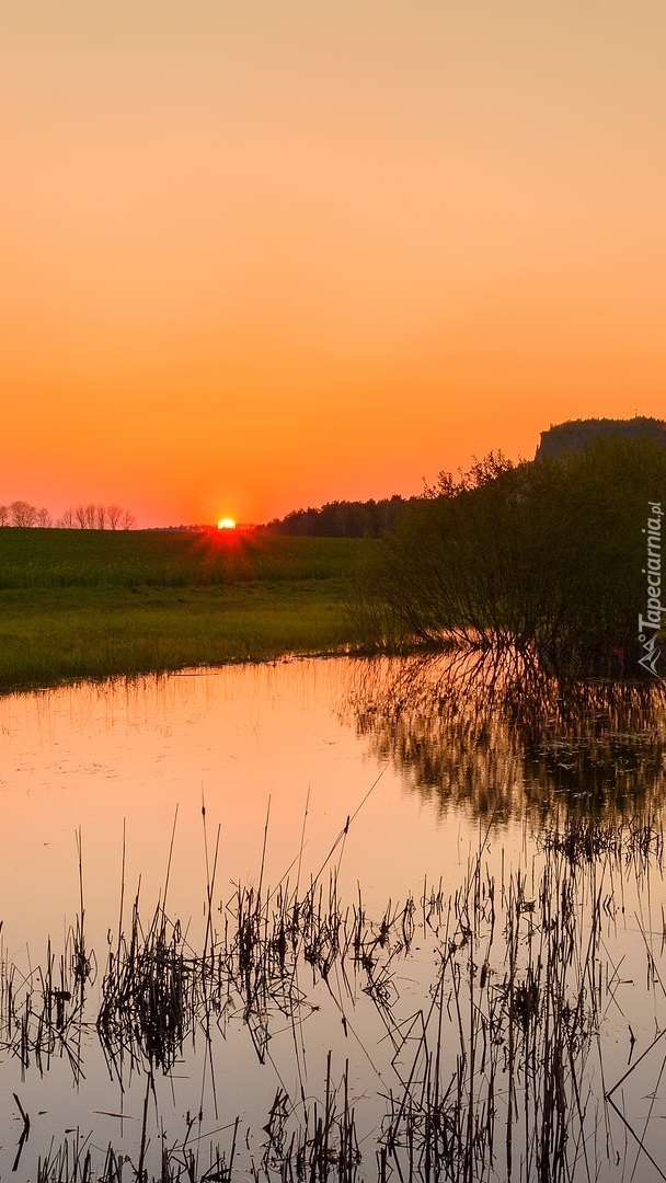 Edytor tapety: Staw w zachodzacym słońcu