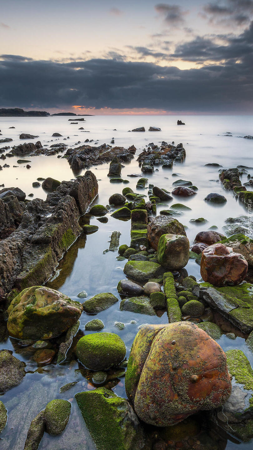 Edytor tapety: Omszałe skały w morzu