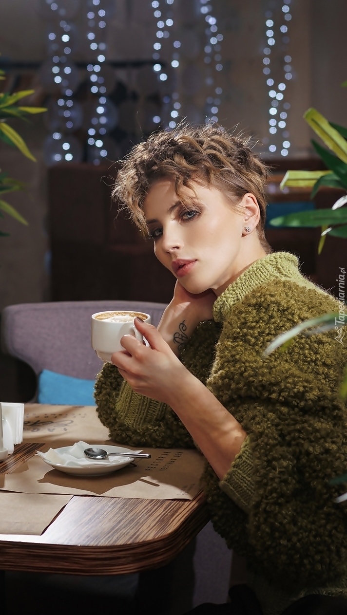 Edytor tapety: Kobieta przy kawiarnianym stoliku