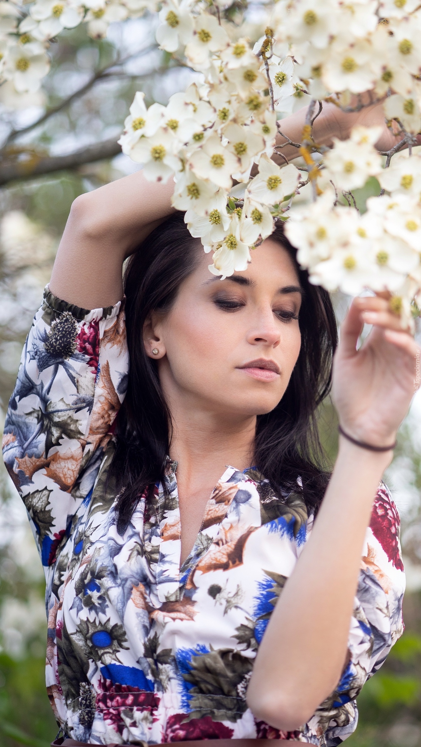 Edytor tapety: Kobieta pod kwitnącym drzewem