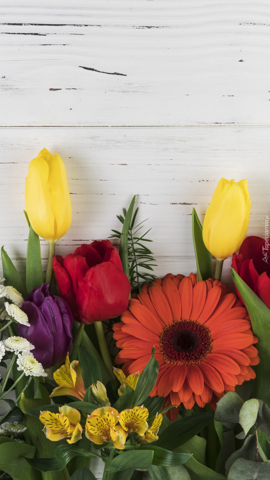 Edytor tapety: Kwiaty na deskach