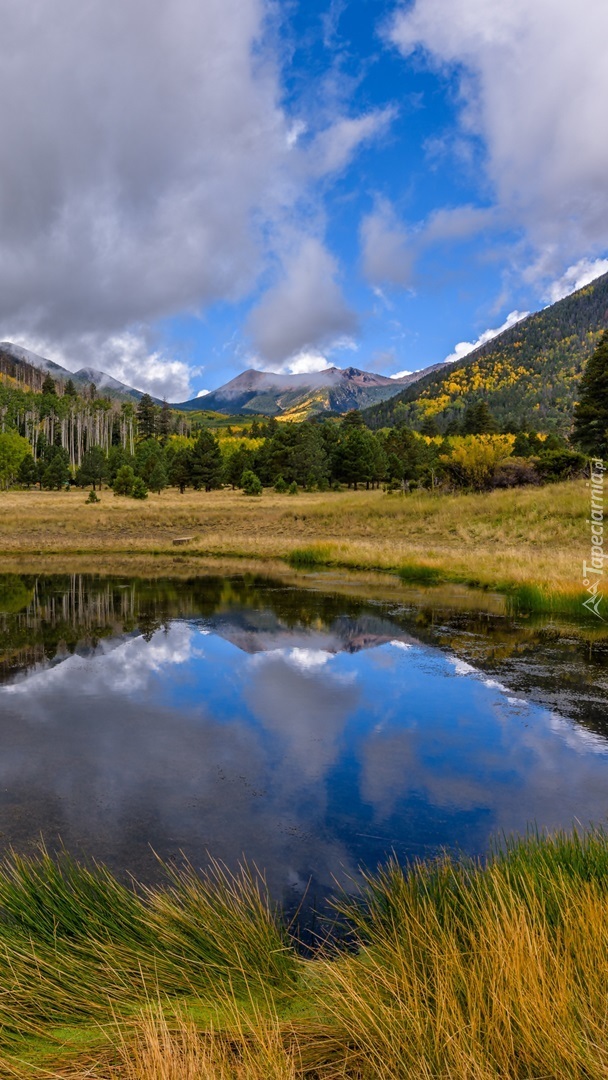 Edytor tapety: Pożółkłe trawy nad jeziorem
