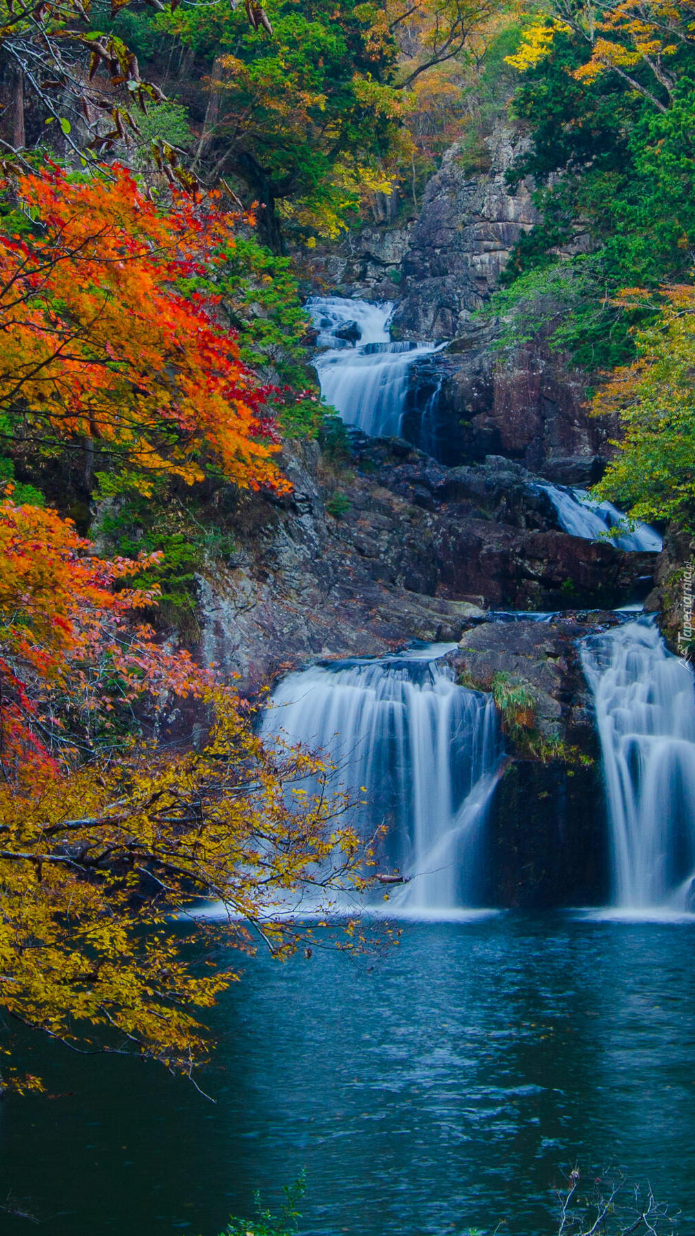 Edytor tapety: Wodospad kaskadowy wśród jesiennych drzew