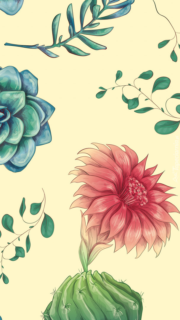 Edytor tapety: Tekstura z kwiatami kaktusa