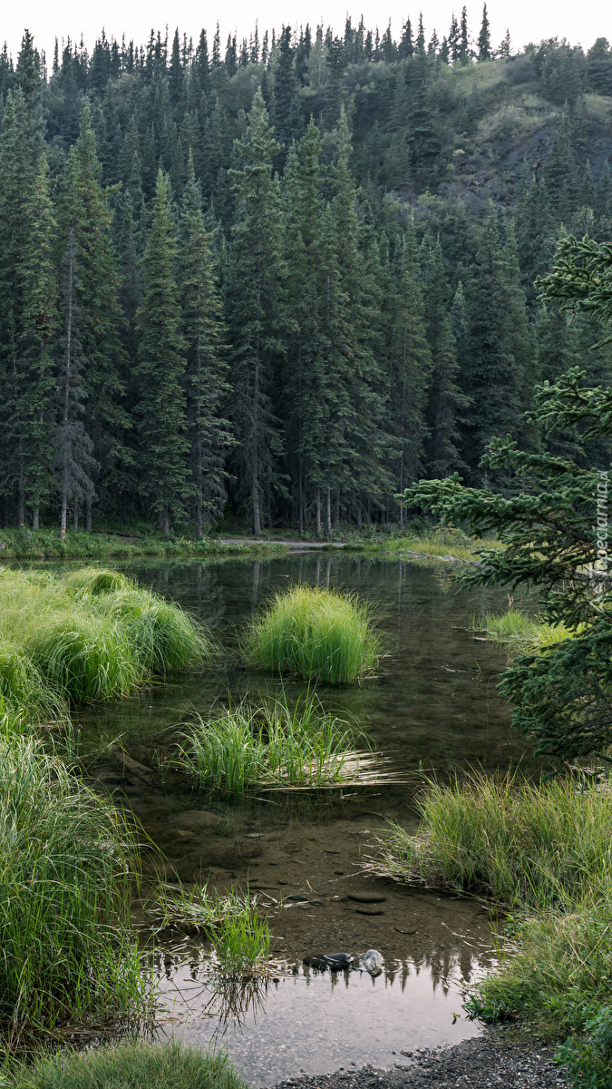 Edytor tapety: Kępki trawy w jeziorze