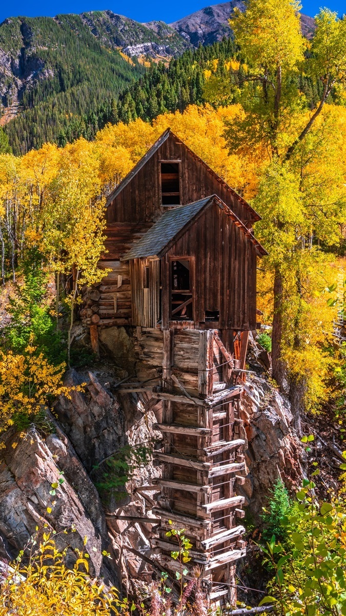 Edytor tapety: Młyn Crystal Mill na skale